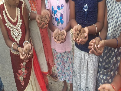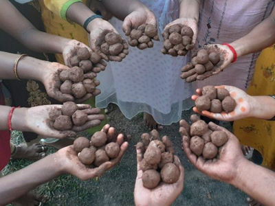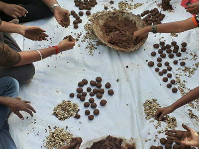 நாங்கள் குறிப்பாக வேப்பமர விதைகளை சேகரித்து, பதப்படுத்தி விதைப்பந்து தயாரித்துள்ளோம்.